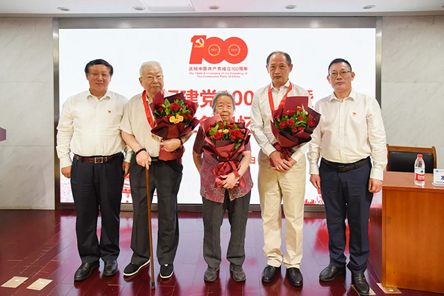 建黨100年,黨齡50年。恒天集團黨委書記、董事長劉海濤,黨委副書記、總經理顏甫全向離退休老黨員代表曹東升(黨齡68年)、郭春梅(黨齡68年)、李懷嶺(黨齡51年)頒發了“光榮在黨50年”紀念章,新黨員代表為老黨員獻上鮮花。這幾位離退休老黨員深情表示,中國共產黨的一百年既是艱苦奮斗的一百年,也是取得輝煌成就的一百年,我們雖然離開了工作崗位,但心與公司是始終相連的,會繼續大力傳承紅色基因,余生用忠誠繼續譜寫生命樂章。